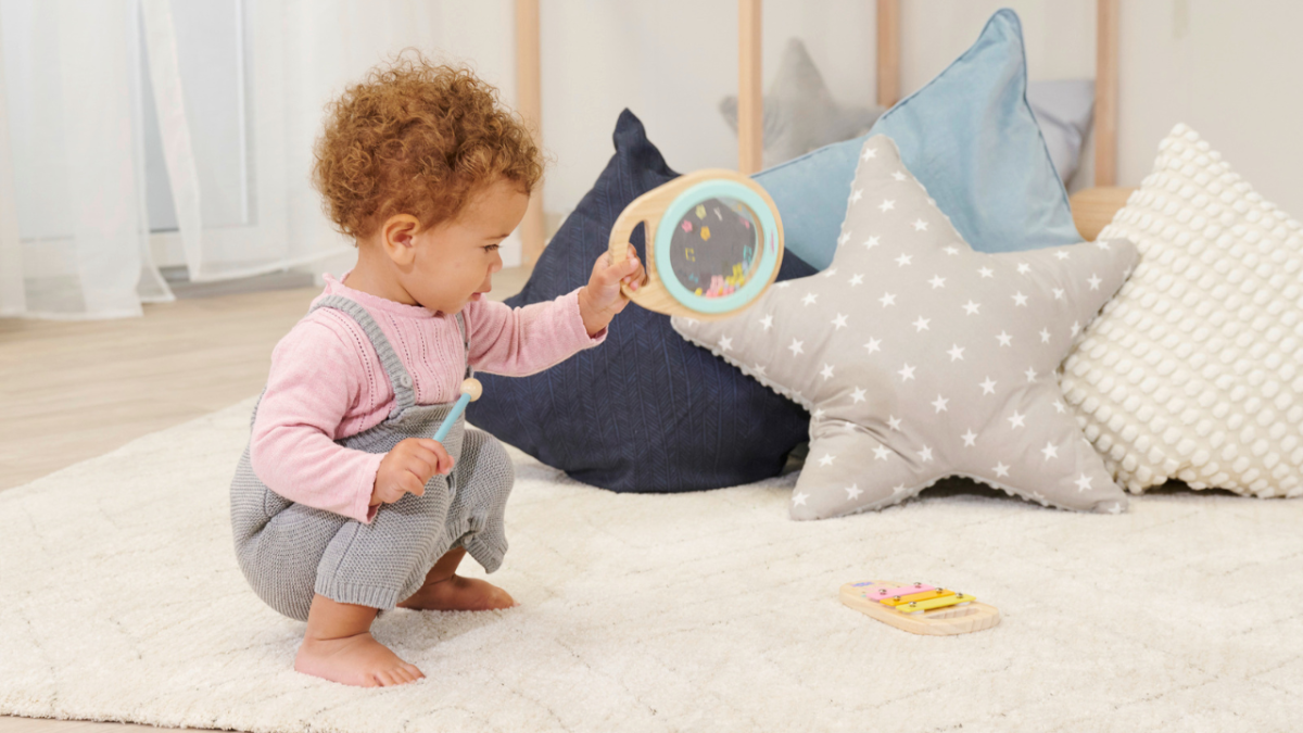 Dès l'âge d'un an, les jouets qui entraînent la motricité prennent une place centrale. Les trotteurs et les jouets à tirer sont alors intéressants en tant que jouets adaptés à l'âge des jeunes enfants à partir de 1 an. Parallèlement, tu peux commencer à éveiller ton enfant à la musique, par exemple avec des jouets musicaux en bois adaptés à son âge.